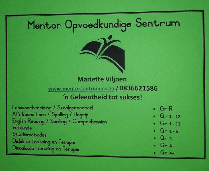 Mentor is 'n opvoedkundige instansie wat vir elke leerder die geleentheid bied om toegang tot sukses te verkry. Mentor spesialiseer daarin om die potensiaal van leerders op 'n doelgerigte en genotvolle wyse te ontwikkel. Die doel van die instansie is om saam met die skool en ouers hande te vat en die bes moontlike fondasie vir elke leerder te lê. Daar word met liefde en geduld gebruik gemaak van positiewe motivering om by elke leerder 'n sterk, gesonde selfbeeld en selfvertroue te ontwikkel.